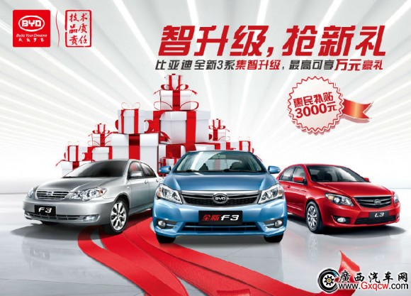 比亞迪全新3系 智升級(jí),搶新禮送不停 比亞迪全新f3,采用了家族式設(shè)計(jì)風(fēng)格,有了更鮮明的性格特征。比亞迪全新F3車身線條豐潤(rùn)之余又凹凸有致,整體上大方、耐看,細(xì)節(jié)搭配和諧。試駕當(dāng)天遇上淅淅瀝瀝的小雨,竟然有種清新美。比亞迪全新f3的外觀,應(yīng)該能吸納一批首次購(gòu)車的年輕群體。