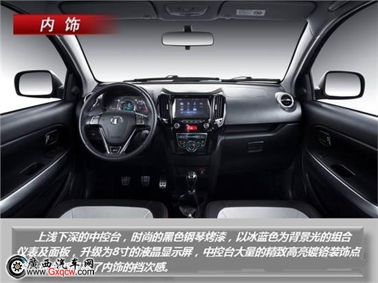 內飾·上淺下深的中控臺,時尚的黑惡色鋼琴烤漆,以冰藍色為背景光的組合儀表及面板,升級為8寸的液晶顯示屏,中控臺大量的精致高亮杜羅裝飾點綴,都大大的提高了內室的檔次感。