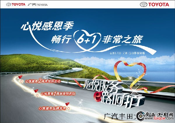 為了避免您的愛車患上"空調(diào)病",同時也作為"心悅服務(wù)"品牌發(fā)布兩周年的真情回饋,6月17日至7月15日,廣汽豐田將在全國333家銷售店開展2012年廣汽TOYOTA夏季服務(wù)活動,以貼心的服務(wù)踐行"心悅服務(wù)"品牌的五大承諾。活動期間,廣汽豐田車主到店即可免費享受空調(diào)系統(tǒng)全面健診。