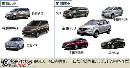 前驅(qū)還是后驅(qū)?相信很少人會刻意關(guān)注這項參數(shù),但對于MPV車型來說,不同的驅(qū)動形式卻能帶來不同的產(chǎn)品屬性。很明顯,五菱宏光、風(fēng)行菱智這類宜商宜家的MPV車型選擇前置后驅(qū),是為了加大扭矩輸出效率,進(jìn)一步加強(qiáng)載物能力和燃油經(jīng)濟(jì)性。而寶駿730則更加注重駕乘過程中的實用性和舒適性,所以使用了主流高端MPV的前置前驅(qū)平臺,目前市場上的類似別克GL8、本田奧德賽、日產(chǎn)貴士等百萬元以下的MPV車型均源于此驅(qū)動形式的平臺。