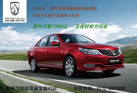 汽貿(mào)園雙誠(chéng)寶駿4S店將加大力度回饋消費(fèi)者,4月21日到店購(gòu)車(chē)均有豪華大禮相送!