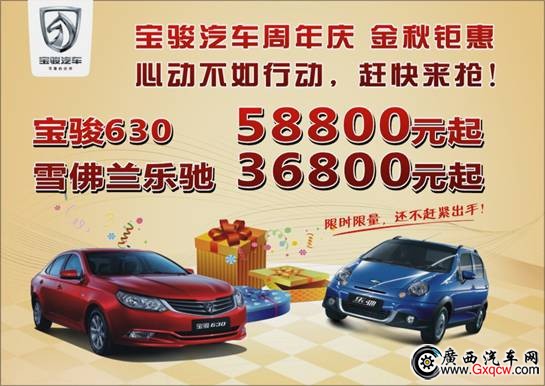 寶駿、樂(lè)馳推出特價(jià)車,限時(shí)限量,先到先得,還不趕快出手!詳情咨詢:0772-8803800