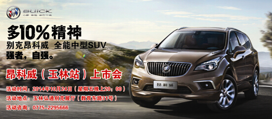 昂科威(玉林站)上市會(huì)時(shí)間:2014年10月24日晚上20:00