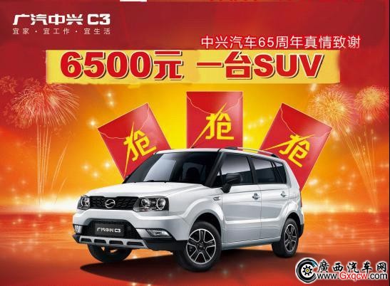 只要動動鼠標,就可以6500元的超低價把廣汽中興C3廠慶版開回家!今晚20:00-21:00,與您相約搶車!
