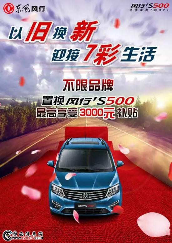 從上市首月銷(xiāo)量即突破萬(wàn)輛大關(guān),到連續(xù)三個(gè)月實(shí)現(xiàn)穩(wěn)健增長(zhǎng),銷(xiāo)量不斷創(chuàng)造新高的風(fēng)行S500,在2016年的春天里又為廣大消費(fèi)者帶來(lái)了新的驚喜!面對(duì)汽車(chē)市場(chǎng)消費(fèi)需求的不斷升級(jí),為滿足更多消費(fèi)者對(duì)7座家庭用車(chē)需求,東風(fēng)風(fēng)行于3月1日起全新推出了“二手車(chē)置換補(bǔ)貼政策”。該政策將主要服務(wù)于想要換購(gòu)風(fēng)行S500的消費(fèi)者,讓他們?cè)谫?gòu)車(chē)時(shí)可以享受到集舊車(chē)置換和新車(chē)補(bǔ)貼優(yōu)惠于一體的“一站式”便捷購(gòu)車(chē)服務(wù)。