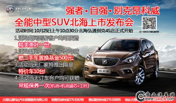 活動(dòng)時(shí)間:10月25日上午10點(diǎn)30分于北海弘通別克4S店正式開始