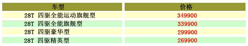 從全系標(biāo)準(zhǔn)配置來看,別克昂科威配備了ABS、EBD、EBA、TCS、ESP、前排雙氣囊、前排側(cè)氣囊、胎壓監(jiān)測(cè)系統(tǒng)、兒童安全座椅接口、行車電腦、定速巡航、后方倒車?yán)走_(dá)、倒車影像、發(fā)動(dòng)機(jī)啟停系統(tǒng)、AUX/USB接口、6揚(yáng)聲器、中控臺(tái)液晶顯示屏、藍(lán)牙電話、安吉星互動(dòng)服務(wù)系統(tǒng)、雙溫區(qū)自動(dòng)空調(diào)、后排空調(diào)出風(fēng)口、手動(dòng)調(diào)節(jié)多功能方向盤、電動(dòng)尾門、無鑰匙進(jìn)入系統(tǒng)、遙控鑰匙、電動(dòng)后視鏡調(diào)節(jié)、電動(dòng)后視鏡折疊、后視鏡加熱、前排座椅電動(dòng)調(diào)節(jié)、前排座椅加熱、真皮座椅、全景天窗、自動(dòng)氙氣大燈和大燈清洗。從配置上來看,別克昂科威顯然已經(jīng)提供了足夠多的配置,即便是入門級(jí)車型消費(fèi)者也不用因?yàn)榕渲貌粔蚨鵁⿶馈?/p>