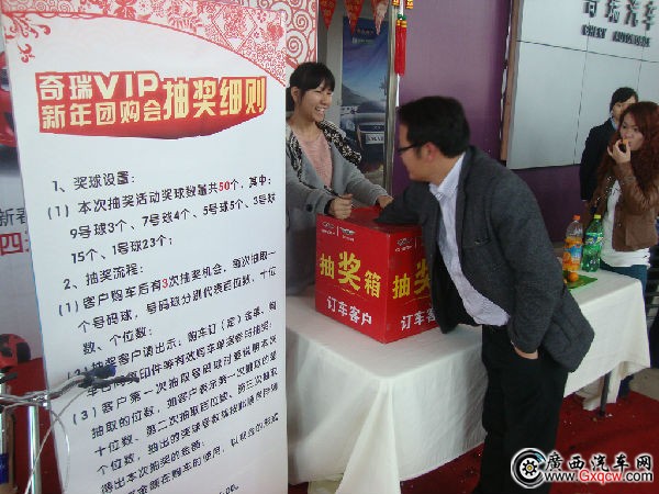1月20日VIP專場閉館銷售活動A3成交9臺、VIP活動成交16臺,值此新春佳節(jié)之季,奇瑞A3購車優(yōu)惠更“給力”,“過年回家開奇瑞.走親訪友免油費―購奇瑞A3四重豪禮相贈”優(yōu)惠購車活動火暴進行中,回顧活動現(xiàn)場,