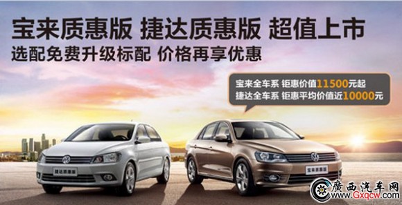 多年來,憑借超高品質(zhì)、強勁動力、完美操控和貼心關(guān)懷,捷達和寶來始終引領(lǐng)中國A級轎車市場的發(fā)展,成為中國高品質(zhì)A級轎車的標(biāo)桿。 此次捷達和寶來這兩款重量級車型同時推出“質(zhì)惠版”,無疑將受到消費者的歡迎,也必將對同級車市帶來強烈的沖擊。