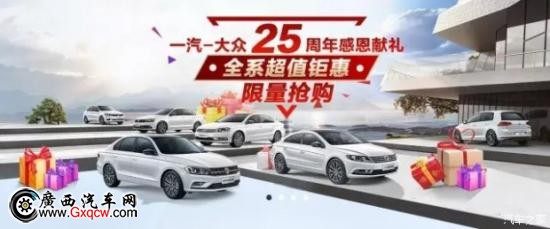 為慶祝一汽-大眾成立25周年,一汽-大眾攜全系車型集體推出了耀世25周年紀(jì)念版,細(xì)節(jié)之處展現(xiàn)睿智尊榮,歡迎到店蒞臨品鑒。