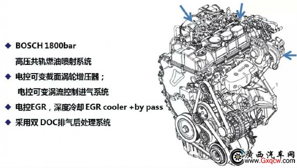渦輪的可變氣道技術:可調整進氣閥開度,改變渦流強度,確保柴油與氣體充分混合和進氣效率;VGT的增壓器:可調渦輪流量和背壓,依據(jù)發(fā)動機轉速和負荷,發(fā)揮渦輪的即時響應性和增壓壓力全程控制。