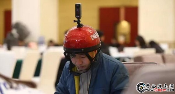 頭上架個(gè)攝像機(jī),這位記者大哥也是拼