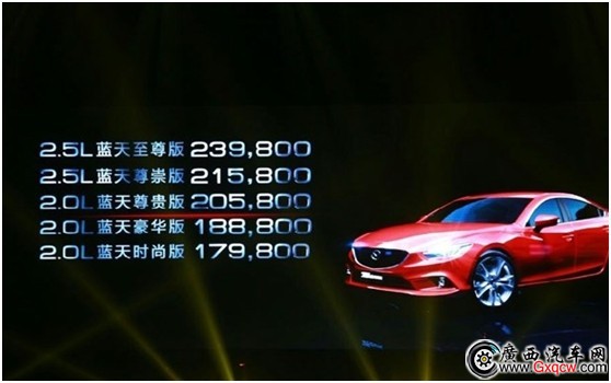 Mazda6 阿特茲全系共推出5款車型,7種顏色,分別搭載2.5升及2.0升創(chuàng)馳藍天發(fā)動機,終端售價如下: