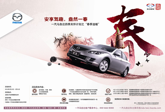 本次“安享駕趣•盎然一春”活動是一汽馬自達“四季關(guān)懷計劃”的重要部分,2012年是一汽馬自達的“服務(wù)品牌年”,“四季關(guān)懷計劃”本著“至誠無昧、至意誠心、達誠申信、赤誠相待、抱誠守真”的態(tài)度,力求讓近70萬一汽馬自達車主感受到了“全心管家式服務(wù)”的細致與溫暖。